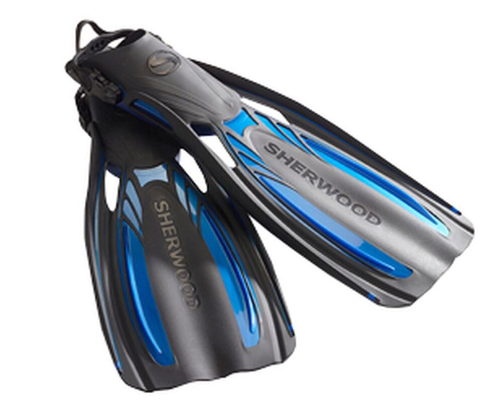 Lightweight, high performance dual-composite fin blade featuring full-length power rails and a central flex channel. Open heel foot pocket is held comfortable and secure with our unique, highly stretchable silicone heel strap. The NEW ELITE fin from Sherwood is the elite choice for power and performance.