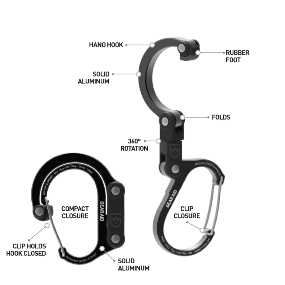 Our tiny but mighty Heroclip Mini gear clip lets you hook and hang small items, such as lights from a tent or a tree branch, bags and toiletry kits from towel racks, or tiny speakers from a wire shelf. This versatile gear clip hangs securely, rotates 360°, and folds compactly in ways other carabiners, clips and hooks can’t, helping you keep your gear organized and exactly where you want it, no matter the activity. The clip also features a wider...