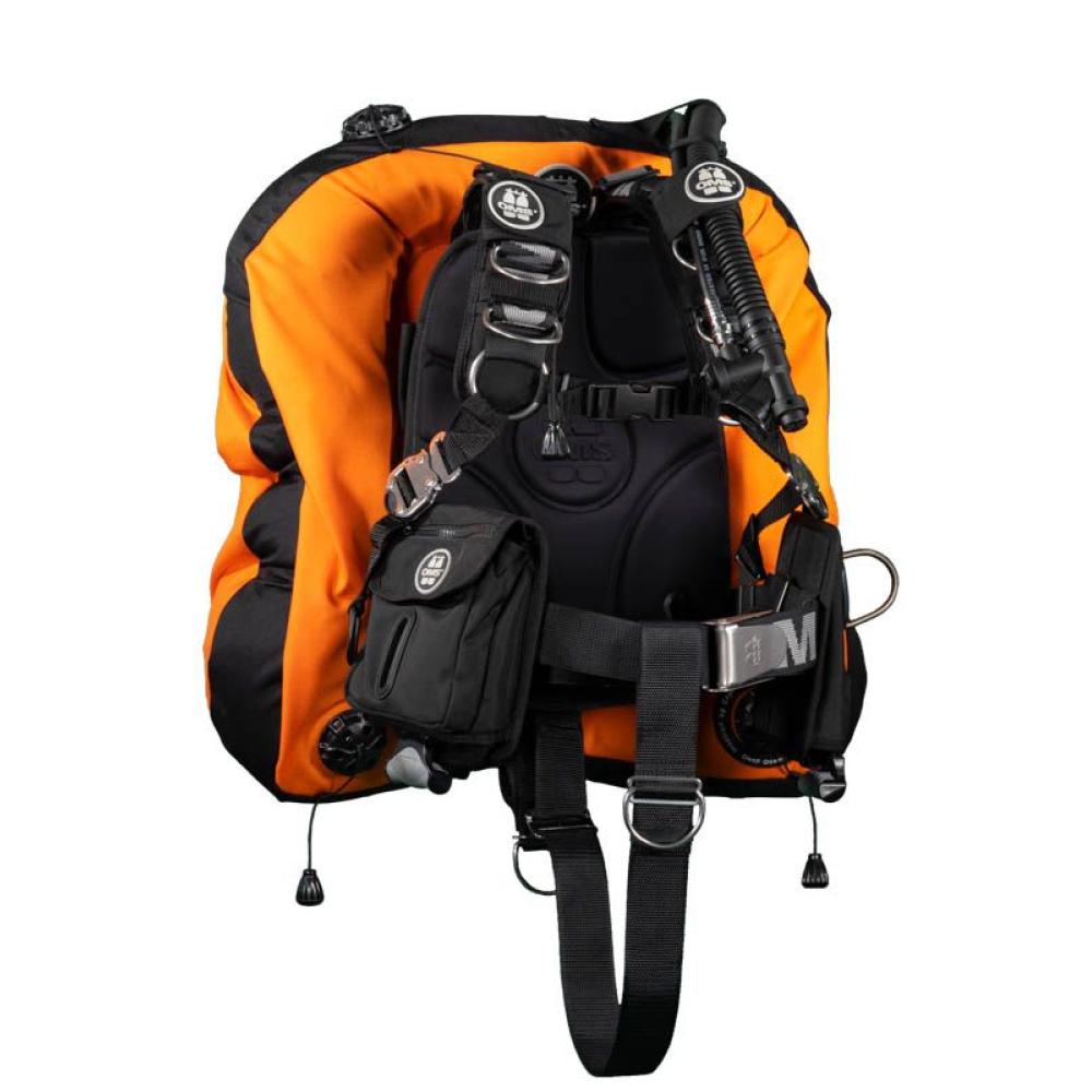 The OMS performance Mono Wing 32 lbs. (14.5Kg lift) is offered here in combination with an OMS Harness III signature. The OMS performance Wing is suitable for single 7L, 10L, 12L and 15L submersible bottles.